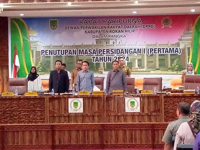 PARLEMEN-Dewan Perwakilan Rakyat Daerah (DPRD) Kabupaten Rokan Hilir (Rohil) resmi menutup masa sidang pertama tahun 2024. Penutupan masa sidang tersebut dilakukan dalam rapat Paripurna DPRD Rohil yang digelar pada Senin sore (29/04/24) di ruang Sidang Gedung DPRD Rohil di Pinggiran Sungai Rokan, Komplek Perkantoran Batu Enam, Bagansiapiapi.